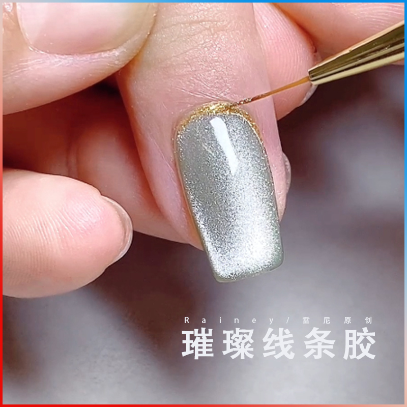 Rainey/雷尼原创美甲勾边拉线彩绘金属亮闪碎钻胶金银色网红闪热门设计联盟服务商