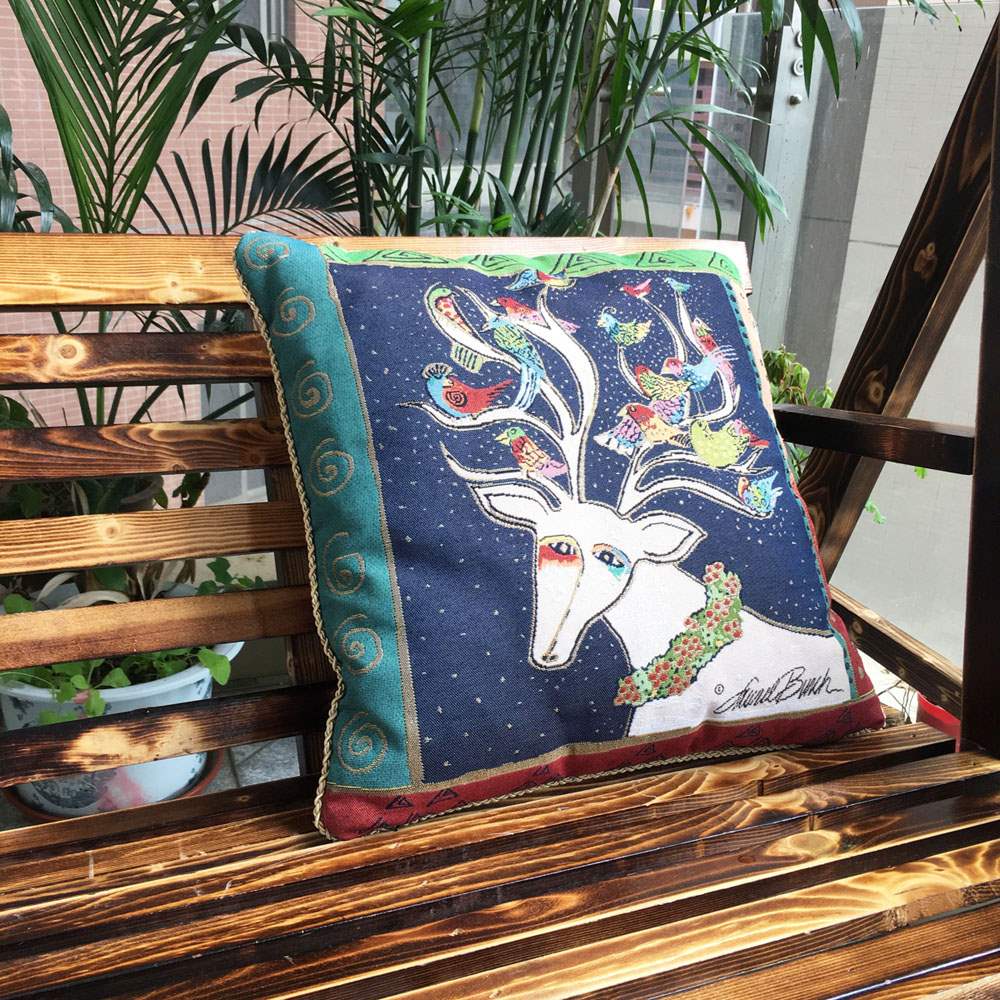 新美国LaurelBurch插画鹿 民族风厚实靠垫抱枕套 uivy原创设计手热门设计联盟服务商