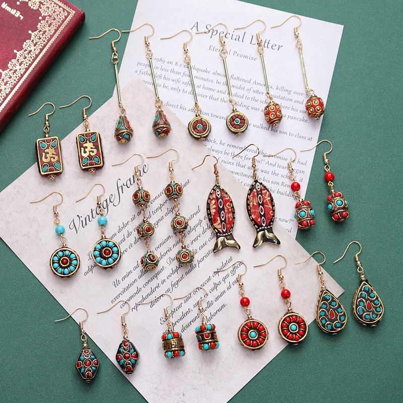 原创设计尼泊尔藏式异域民族风耳环女复古简约气质长款耳坠耳饰品热门设计联盟服务商