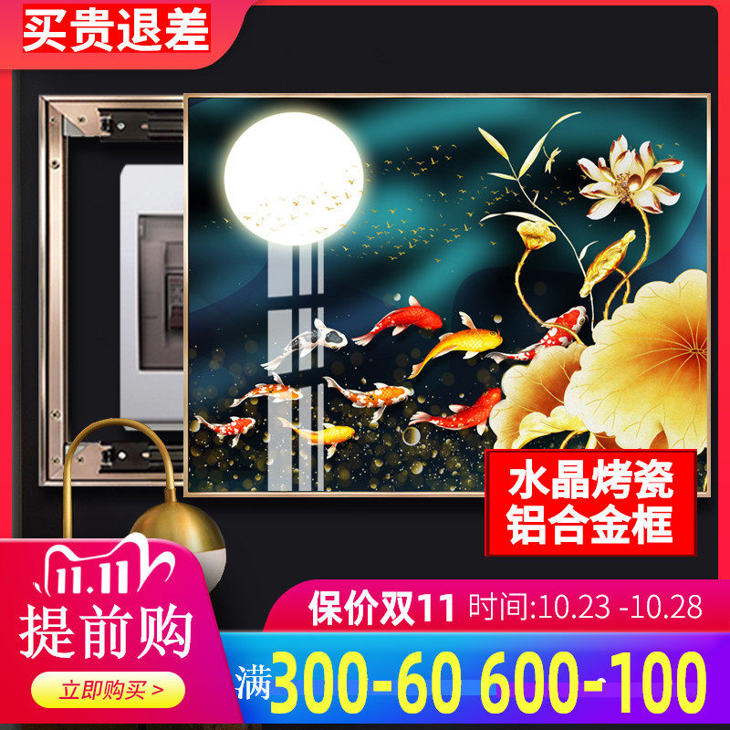 轻奢电表箱装饰画九鱼图玻璃镜面配电箱遮挡画电表盒装饰弱电箱画热门设计联盟服务商