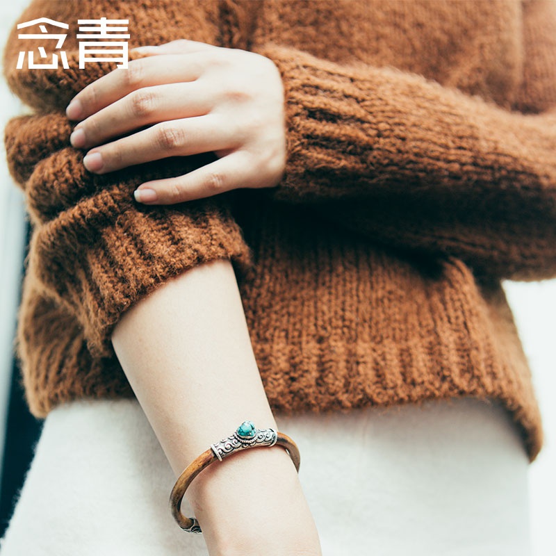 正品念青西藏鸡血藤手镯999银女士野生无节男士民族风设计品质热门设计联盟服务商