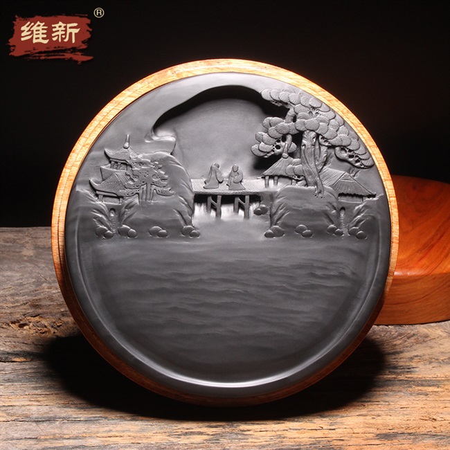 新维新非遗传承名师许亚祥设计手工原石砚台小桥流水老坑歙砚龙尾热门设计联盟服务商