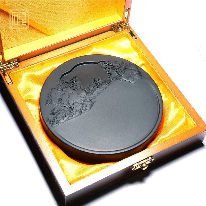 国家非也徽砚台名师设计 新安古韵高档文房礼品砚台老坑端砚天然原石磨文房四宝歙砚黑龙尾礼盒装文房礼热门设计联盟服务商