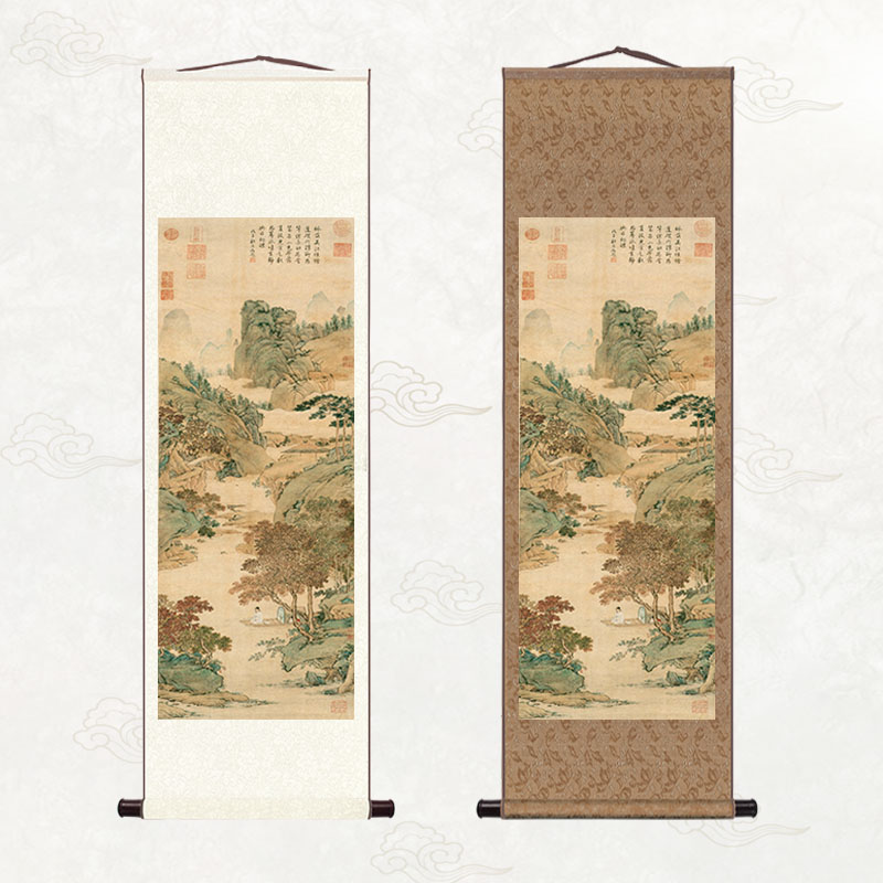 玄关卷轴竖版古画装饰字画挂画听琴图品茶图书房客厅中式仿古壁画热门设计联盟服务商