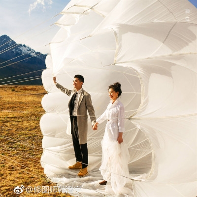 高档婚纱主拍摄影l道具外景创意旅题样照拍摄道具白色降落伞滑奢热门设计联盟服务商