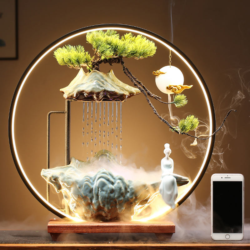 正品新中式办公室高山流水器摆件客厅喷泉景观加湿器乔迁招财开业热门设计联盟服务商