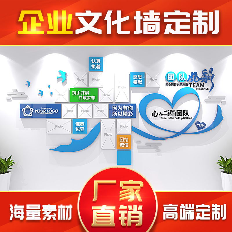 公司企业文化墙定制亚克力办公室背景形象照片墙贴3d立体设计装饰热门设计联盟服务商