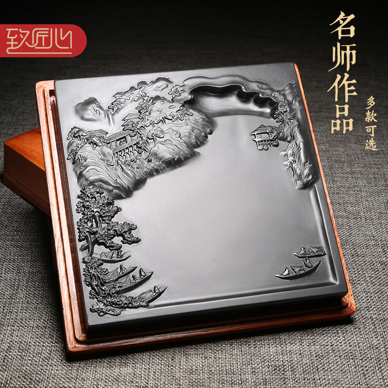 国家非也徽砚台名师设计小楷储墨笔舔老坑天然原石磨墨条墨块。热门设计联盟服务商