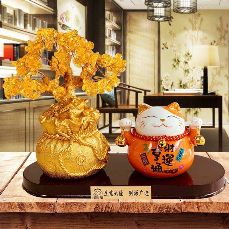 黄水晶发财树酒柜L装饰品摆件家居客厅电视柜摆设小招财猫热门设计联盟服务商
