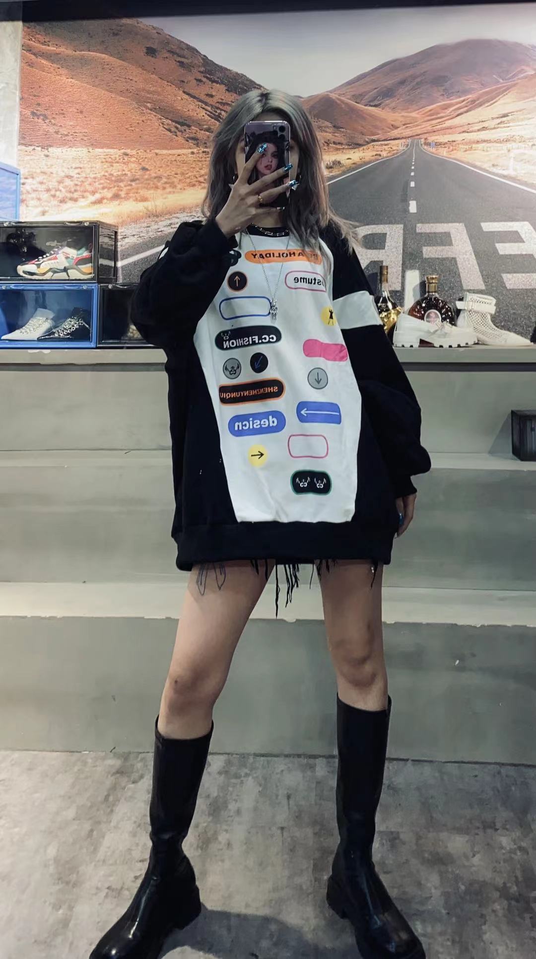 抖音同款CC拼色图标长袖卫衣热门设计联盟服务商