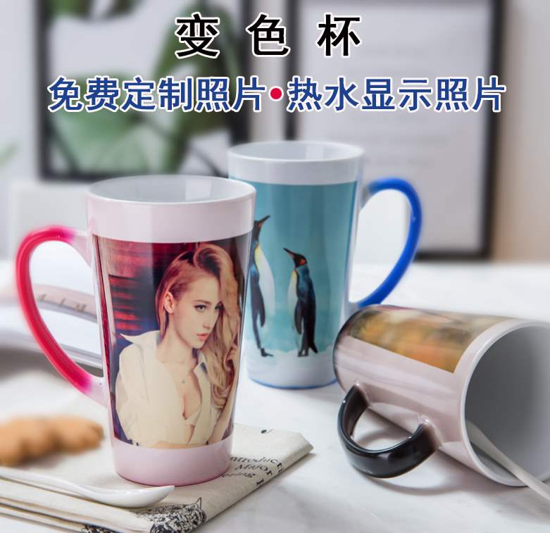 情侣照片水杯diy来图定做印陶瓷杯子大容量锥形变色马克杯热感应热门设计联盟服务商