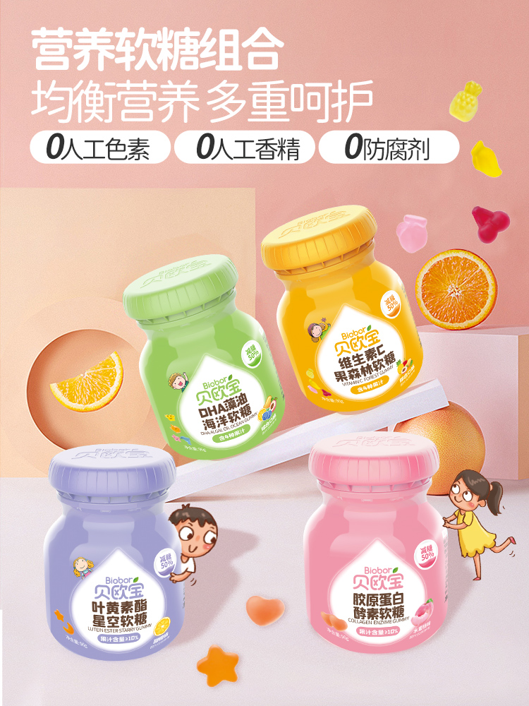 新品贝欧宝水果果蔬孝素帖维生素c叶黄素酯DHA藻油糖儿童零食qq热门设计联盟服务商