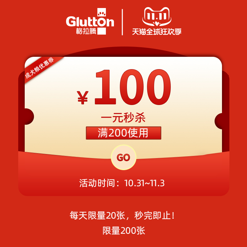 glutton旗舰店满200元-100元指定商品优惠券10/31-11/03热门设计联盟服务商
