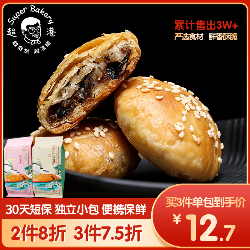 零食/坚果/特产^中式糕点/新中式糕点^^^安徽 黄山^超港黄山烧饼薄金脆徽味烧饼梅干菜扣肉饼零食安徽特产酥皮薄饼